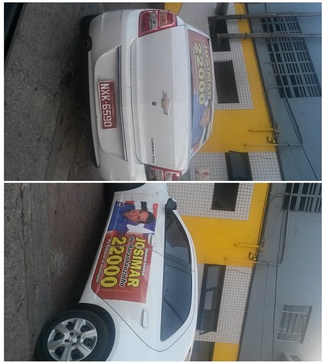 Um taxi de placa NXK 6590, São Jose de Ribamar, foi flagrado na manhã desta quarta-feira 20/08, estampando o adesivo do candidato estacionado em uma repartição pública da Capital.