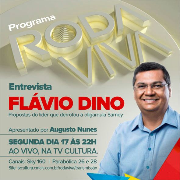 O governador eleito Flávio Dino estará no programa Roda Viva – TV Cultura nesta segunda-feira (17), a partir das 22h. Primeiro governador eleito pelo Partido Comunista do Brasil (PCdoB), Flávio Dino falará na roda de conversa sobre as metas para garantir desenvolvimento social e econômico ao Maranhão.